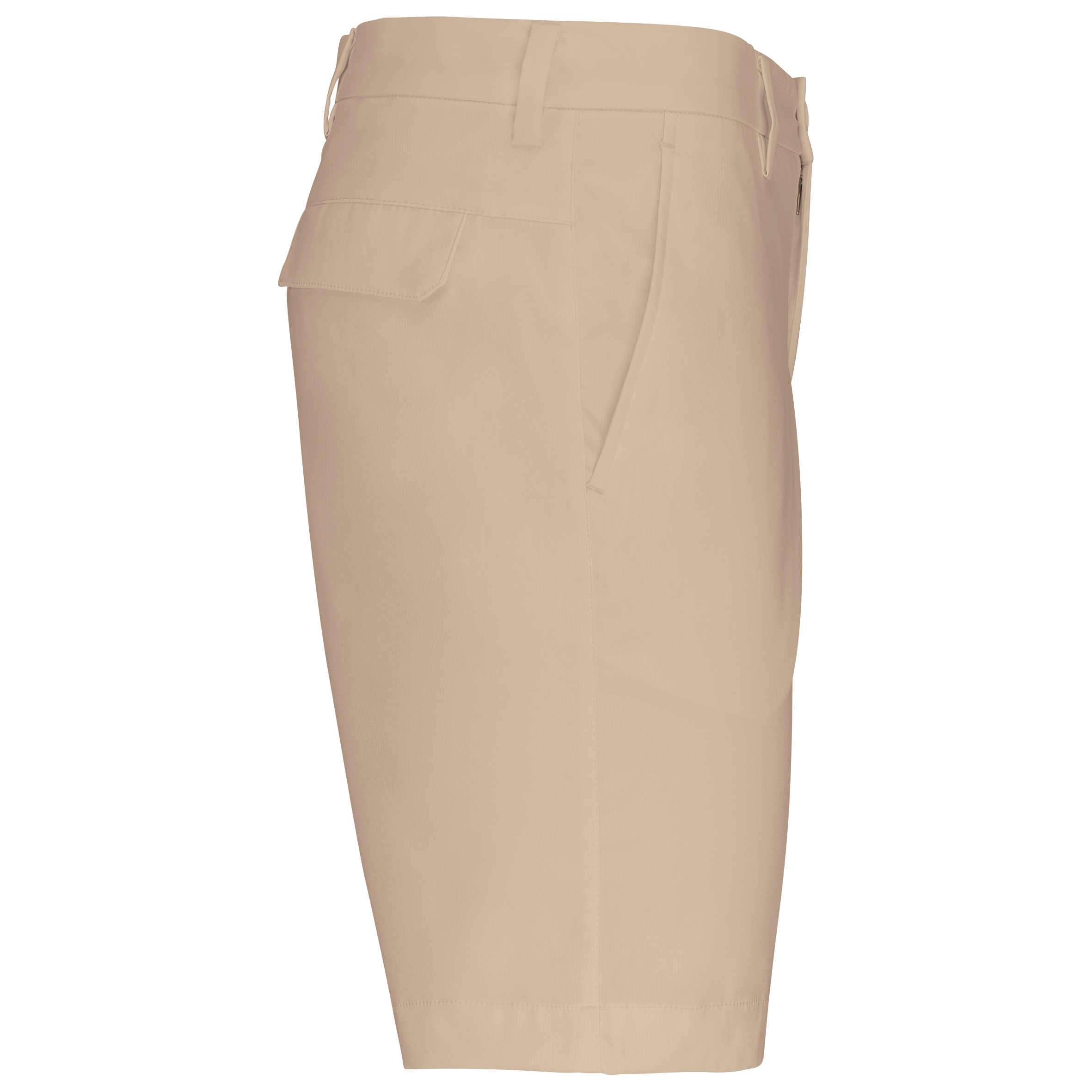96% polyester / 4% élasthanne. Matière souple et déperlante pour un confort optimal. Coupe ajustée. Ceinture avec passants, 2 poches profondes côtés et 2 poches arrière passepoilées avec rabat.