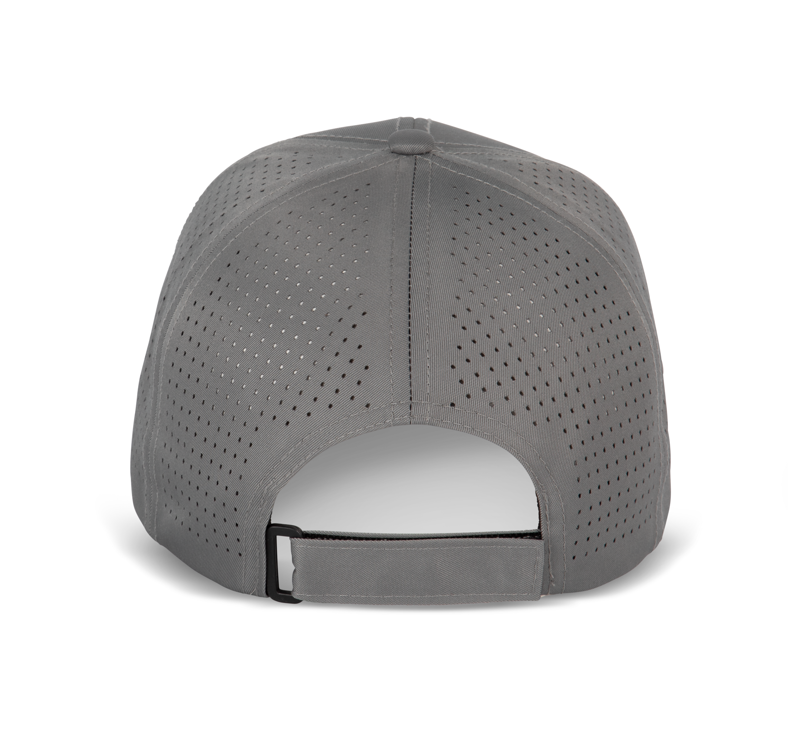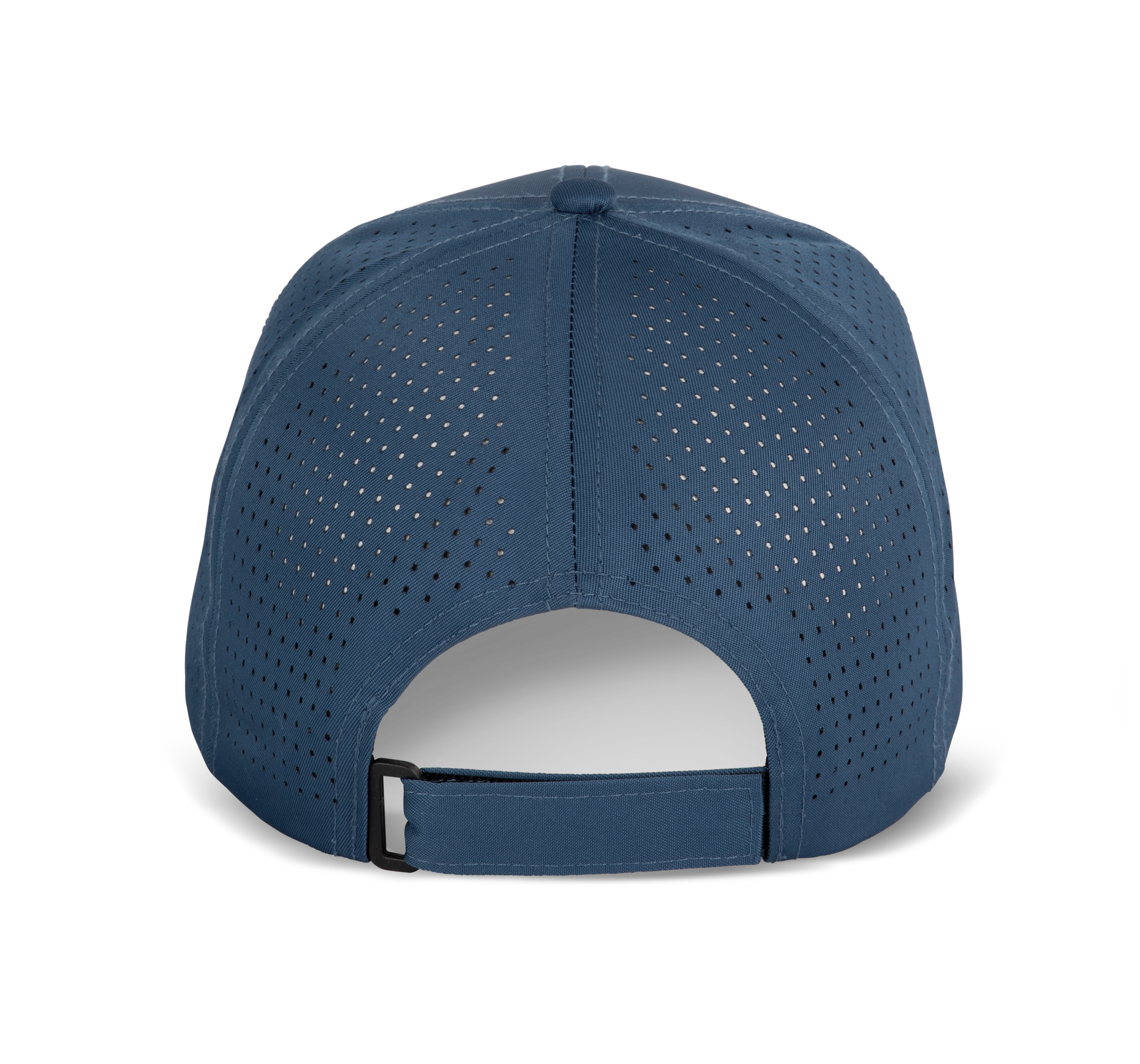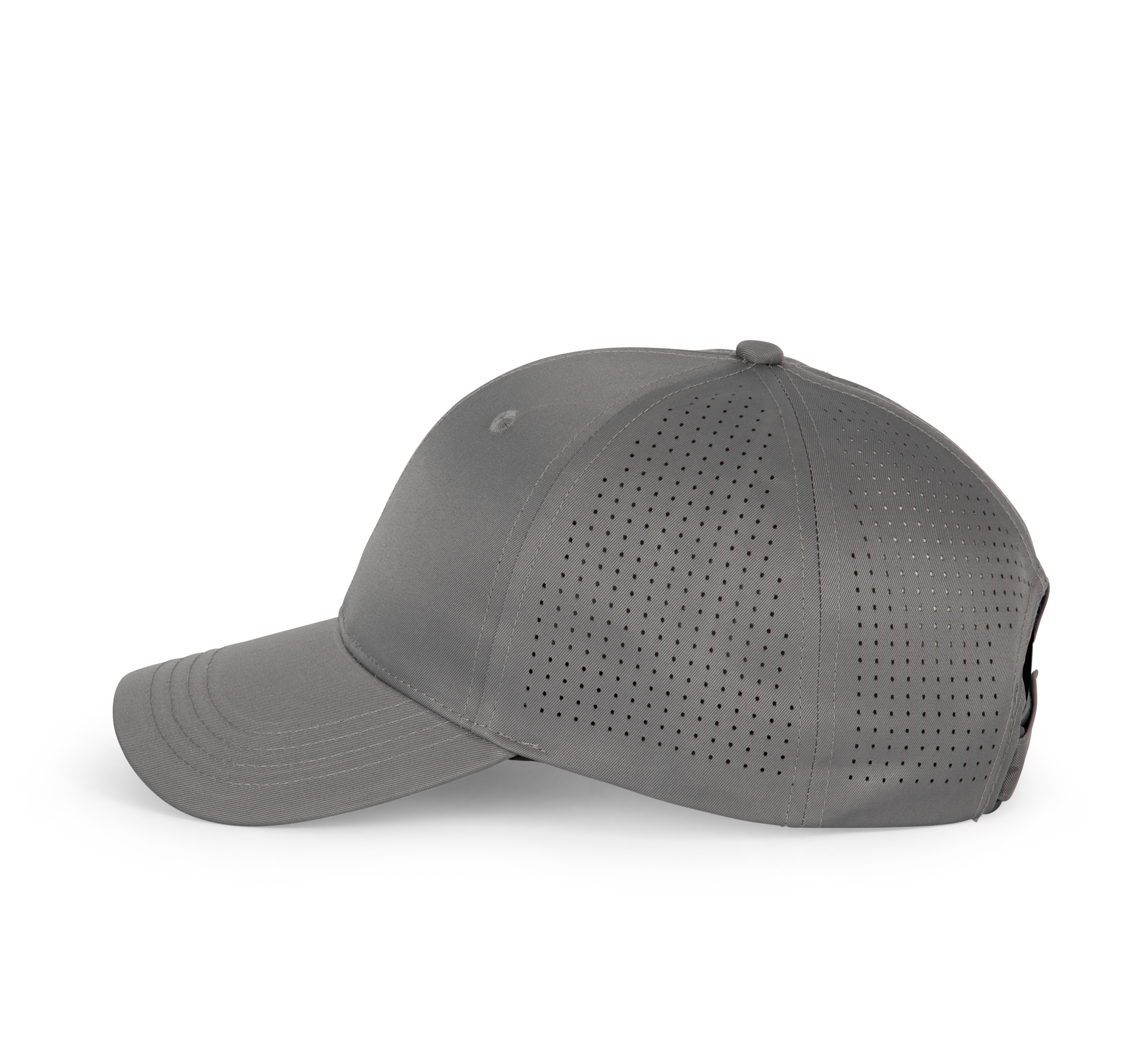100% polyester recyclé. Les 4 panneaux arrières sont microperforés au laser pour garantir une excellente ventilation et respirabilité. Visière incurvée et fermeture par bande auto-agrippante.