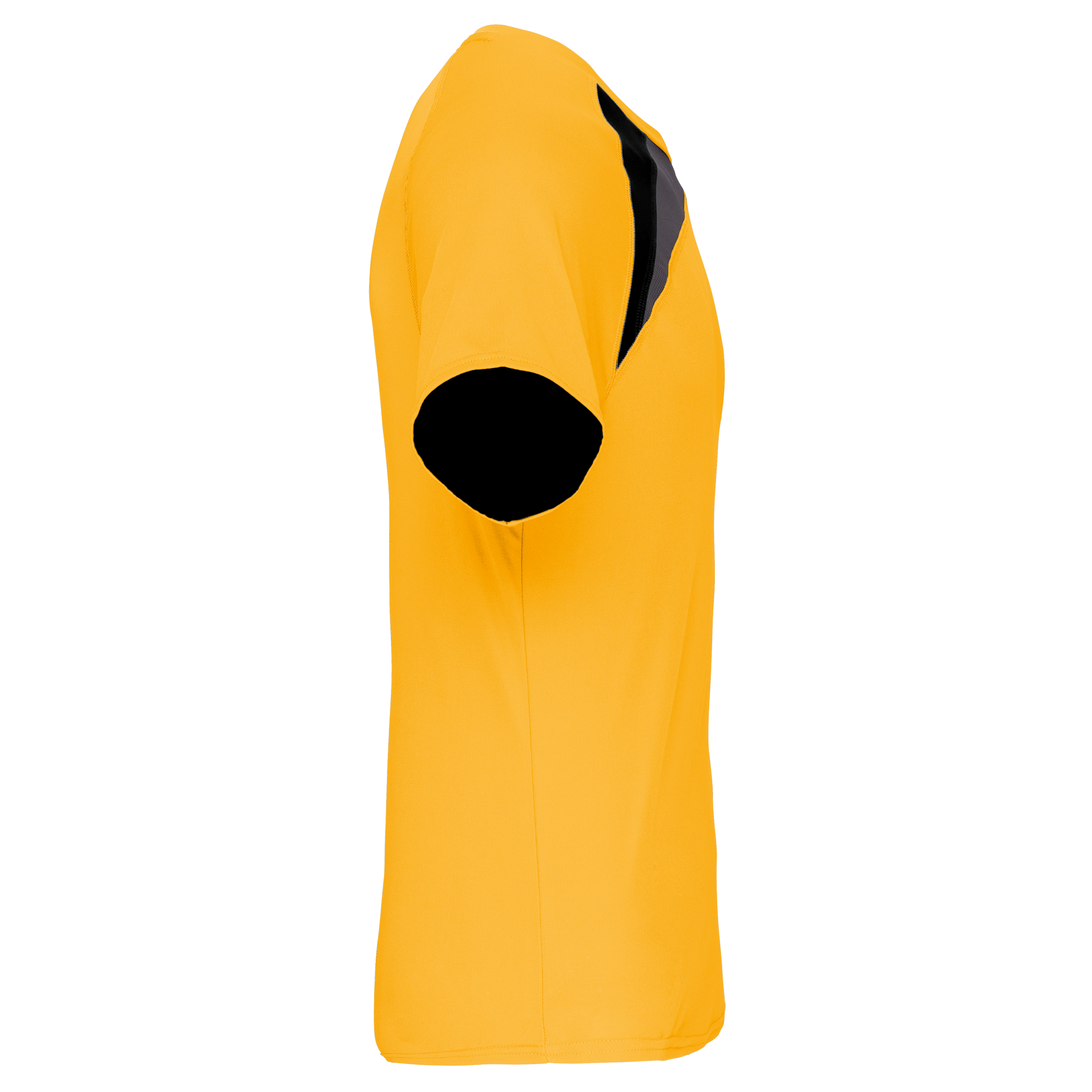 | Description | 100% polyester. Empiècements contrastés. Finition points de recouvrement ton sur ton. Finition double aiguille au bas de vêtement et manches. |