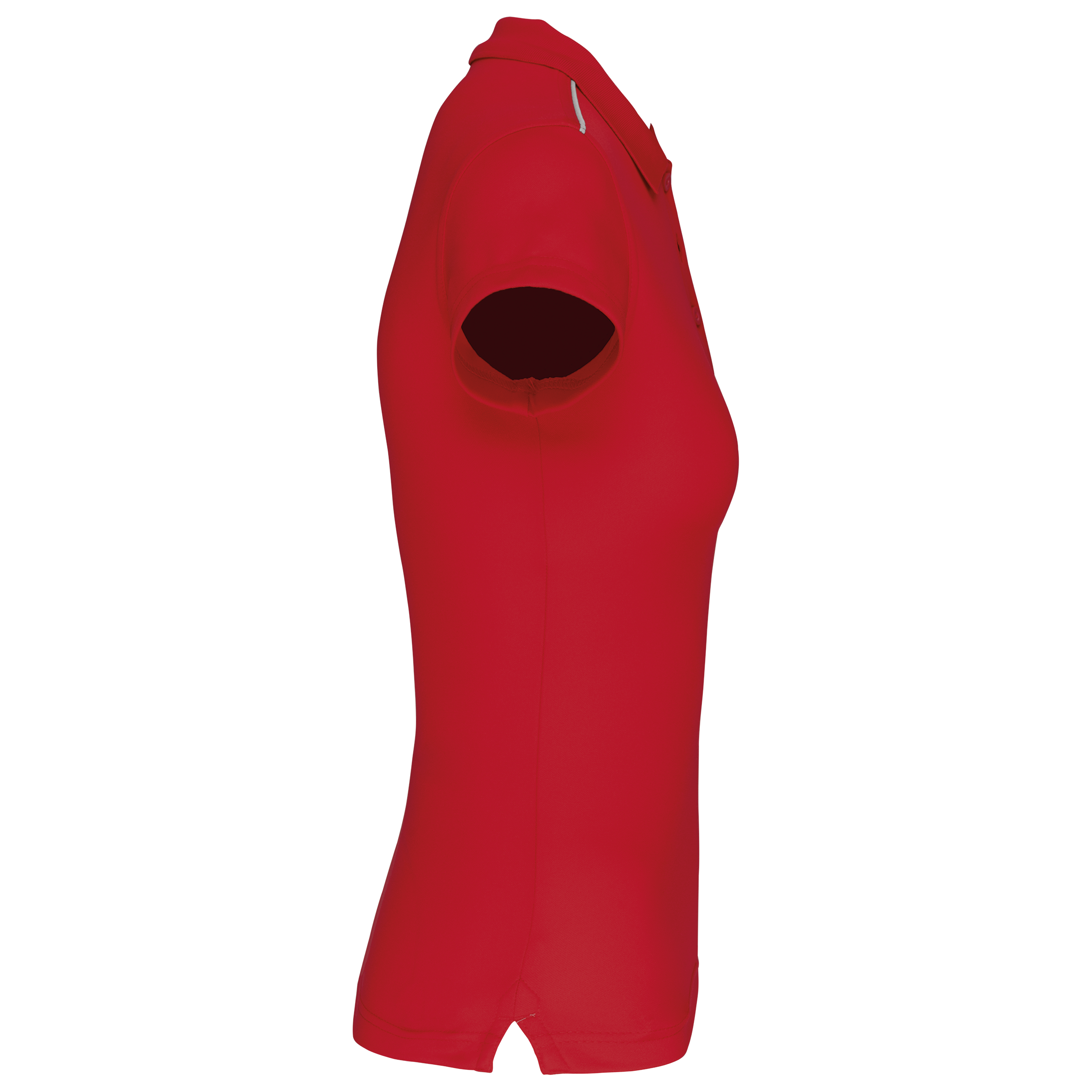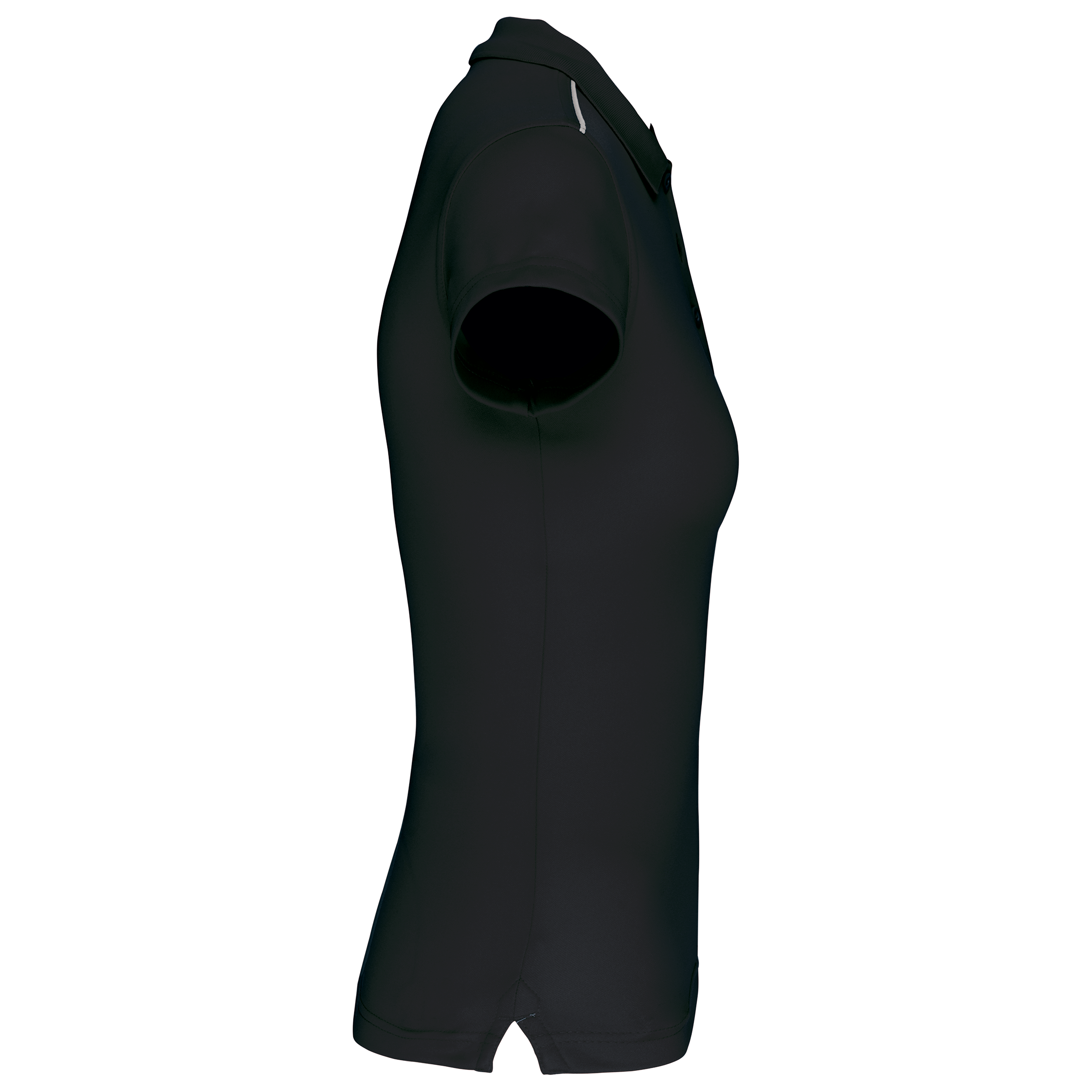 100% polyester interlock. Tissu à séchage rapide. Col en bord-côte. Patte de boutonnage 3 boutons. Bande de propreté contrastée encolure et fentes côtés. Passepoil contrasté épaules. Finition double aiguille bas de manches et bas de vêtement.