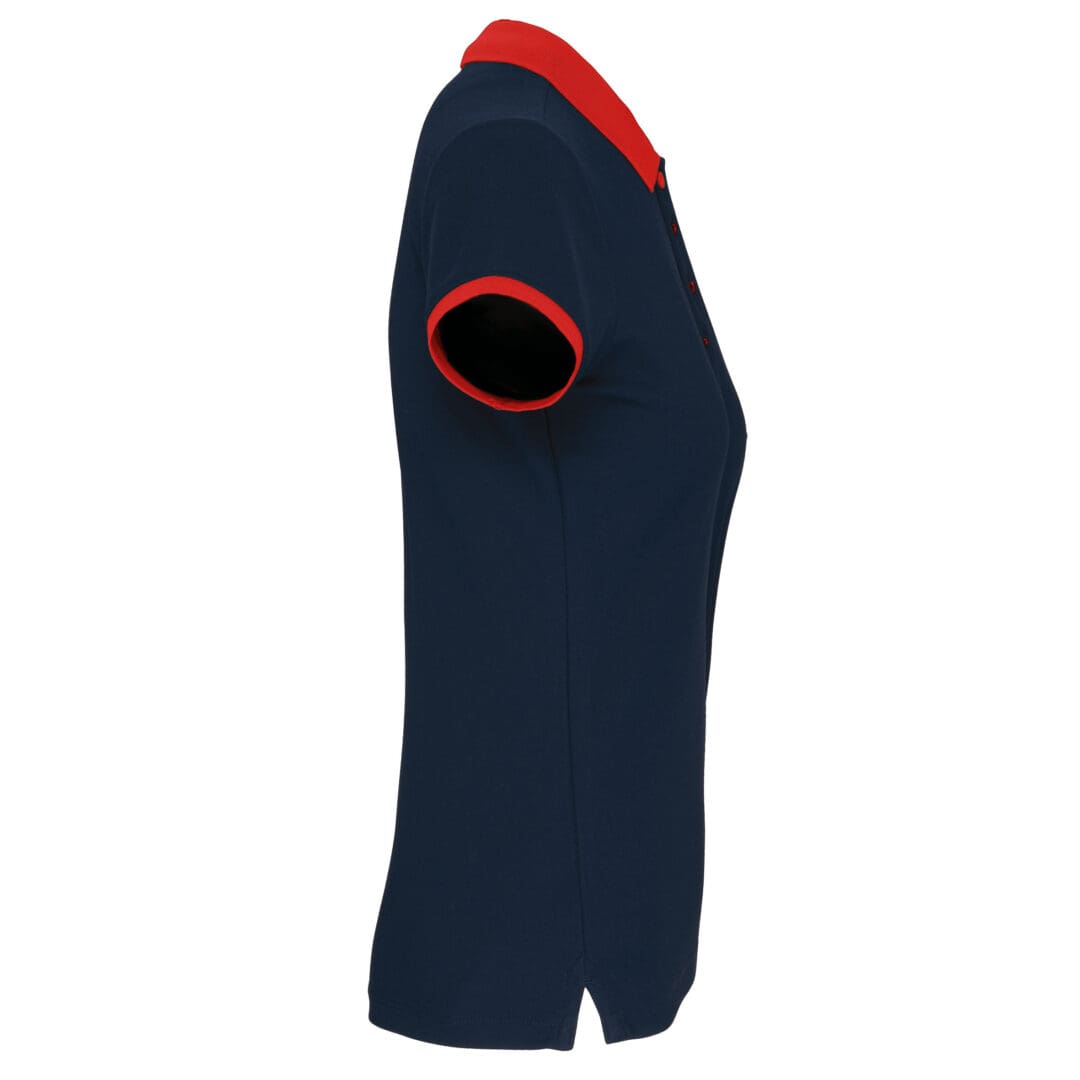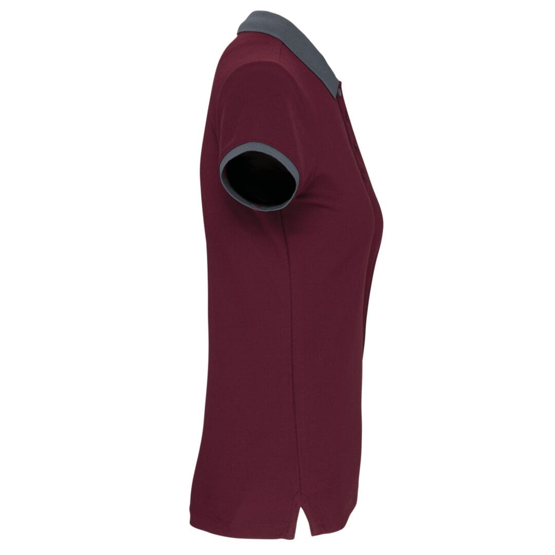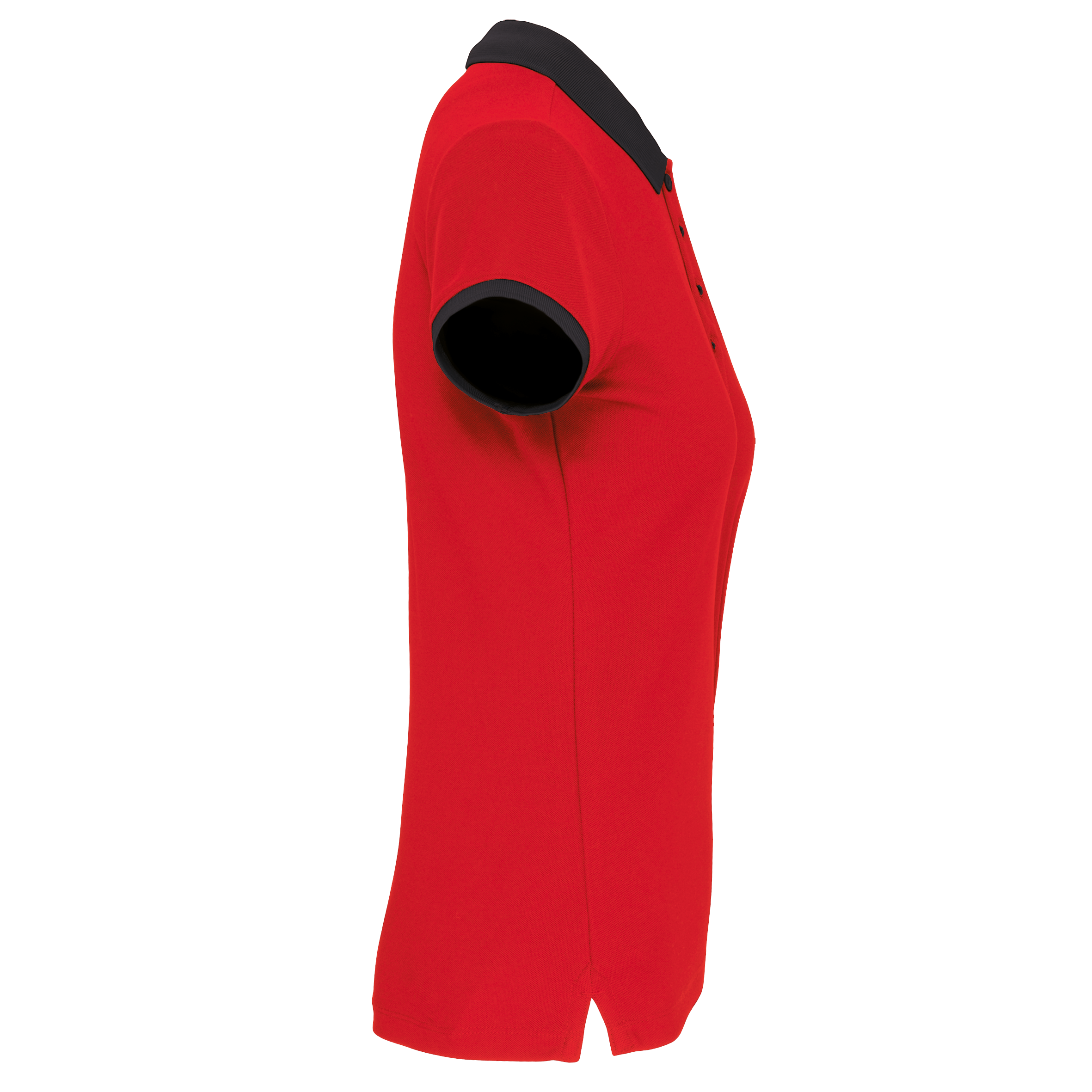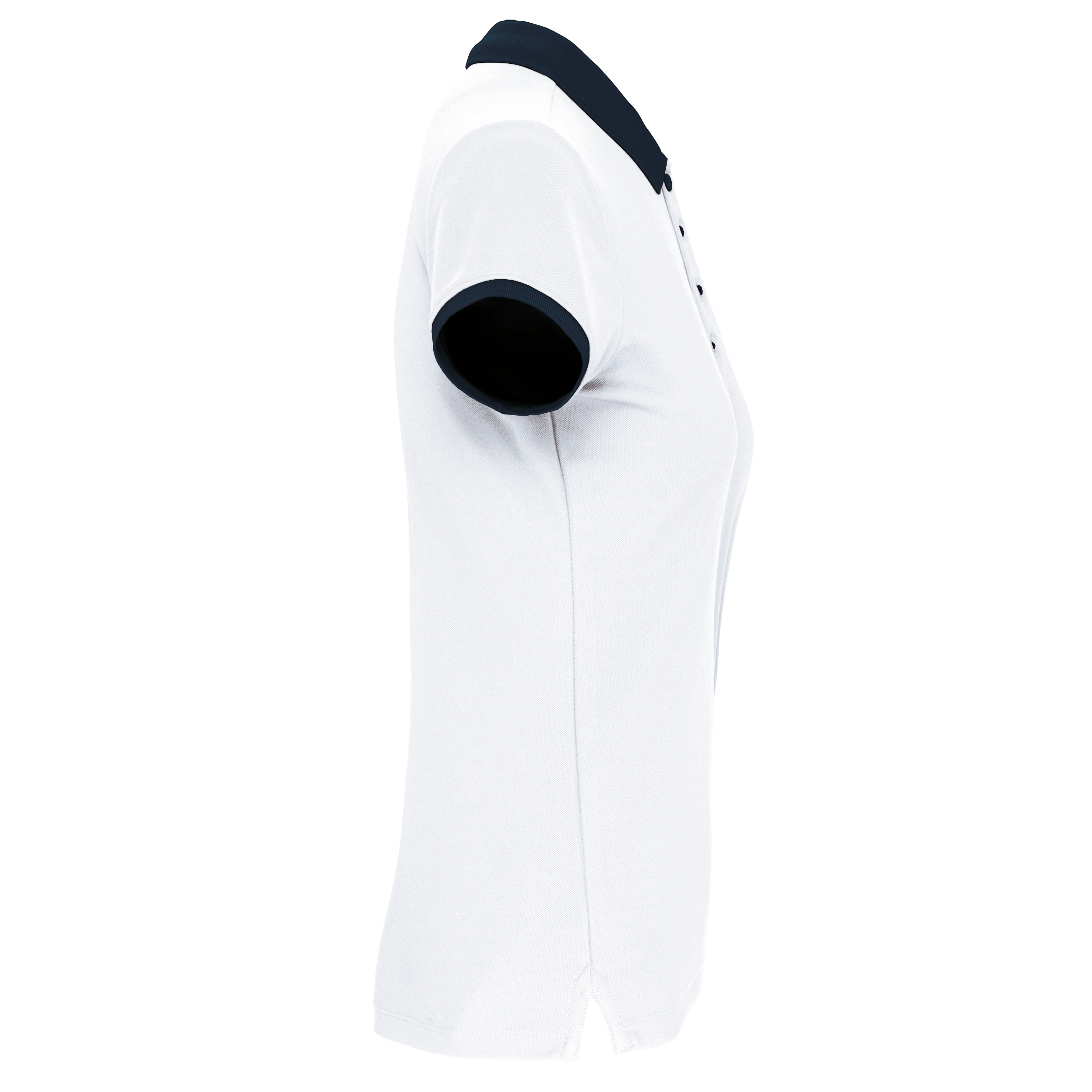 100% polyester. Maille piquée Cool Plus®. Coupe cintrée et look moderne. Col et bas de manche en bord-côte contrasté. Patte de boutonnage 4 boutons (contrastés ou unis selon modèle). Fentes latérales.