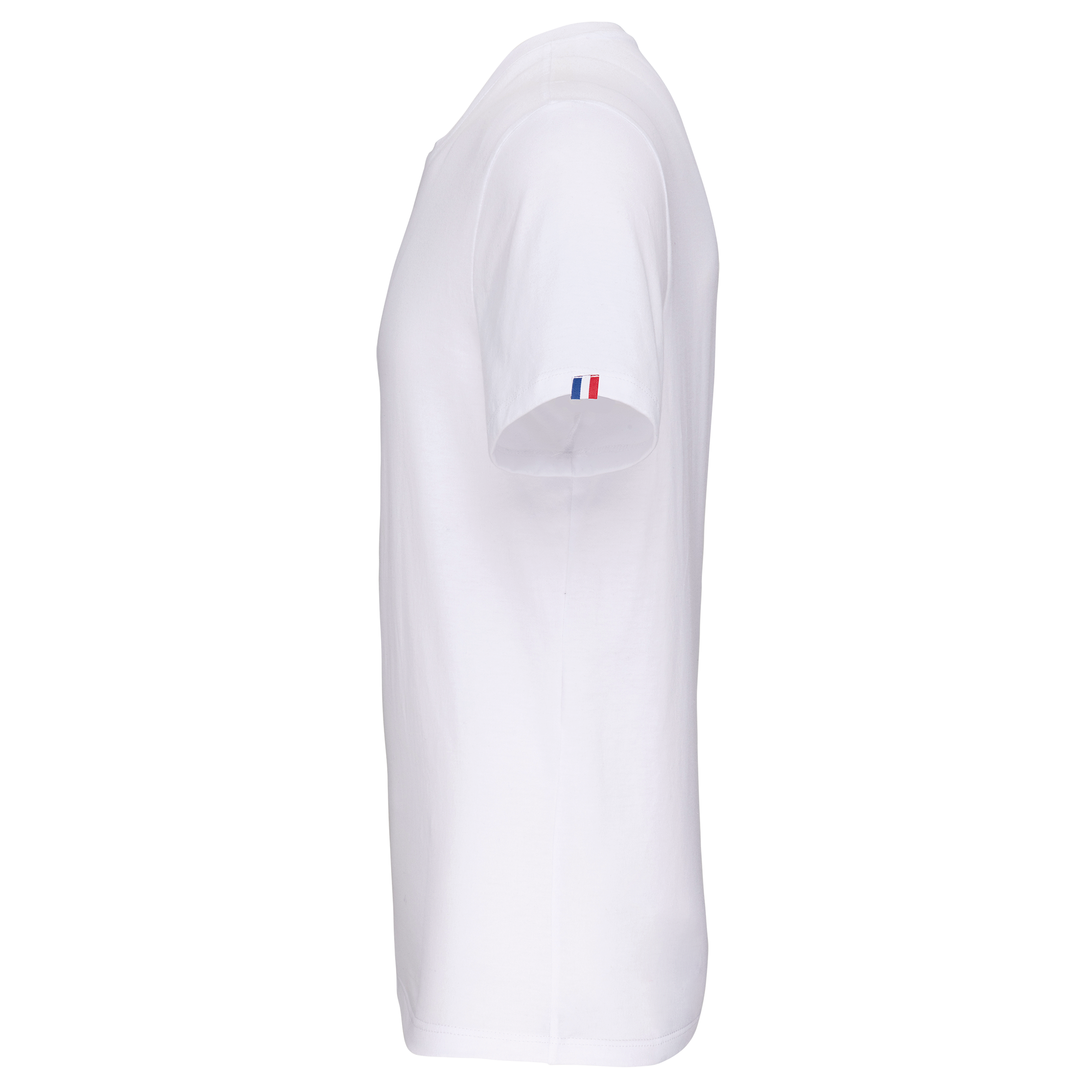 100% coton peigné biologique. Label "Origine France Garantie". Coupé / cousu. Encolure ronde en bord-côte. Bande de propreté ton sur ton dans l’encolure (prolongement dos-épaule). Vignette clip