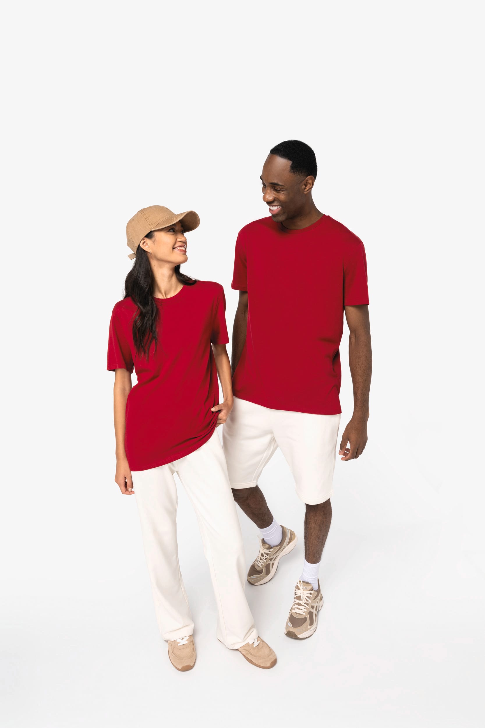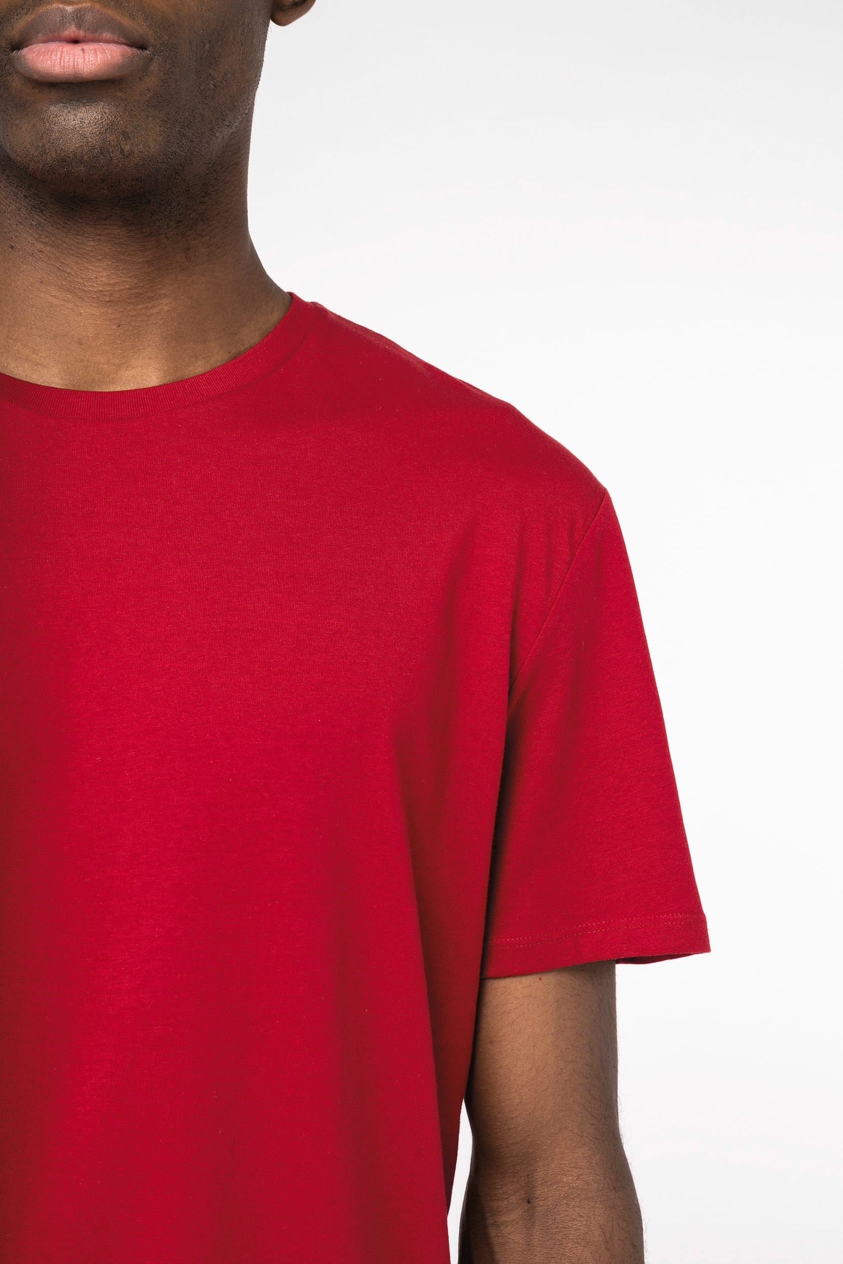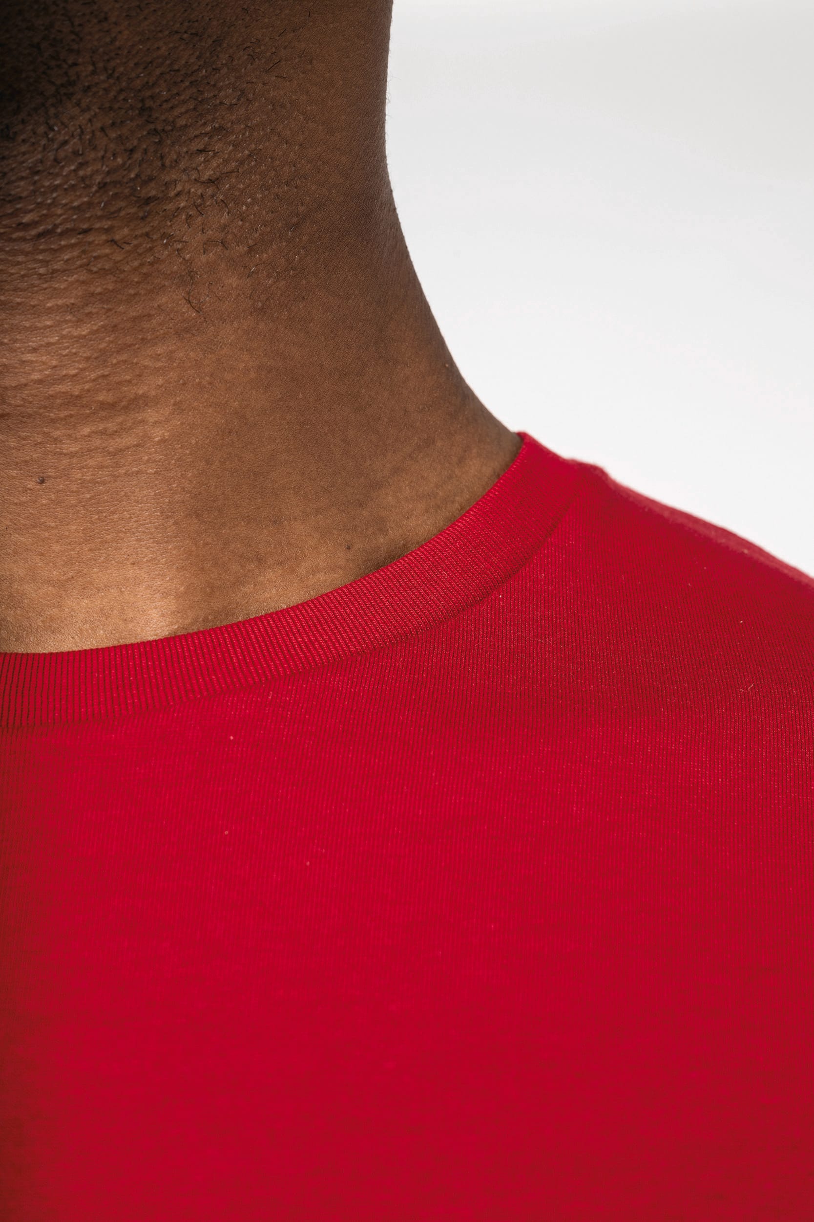 100% coton biologique. Coton peigné ringspun. Coupe ajustée. Coutures latérales. Lavé aux enzymes. Bord côte col 1×1. Bande de propreté intérieure col en matière principale. Ourlet double aiguille bas de manches et bas de vêtement.